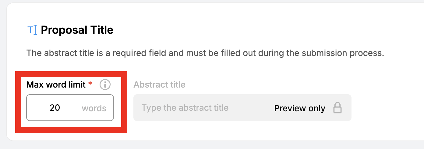 The abstract title is a required field and must be completed during submission. However, you can customize the title settings to suit your needs.